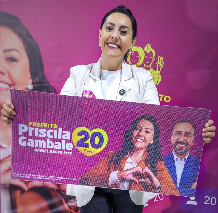 A prefeita e candidata a reeleição, Priscila Gambale (Podemos), realiza neste sábado, 24, um grande adesivaço para agitar os apoiadores de sua candidatura.