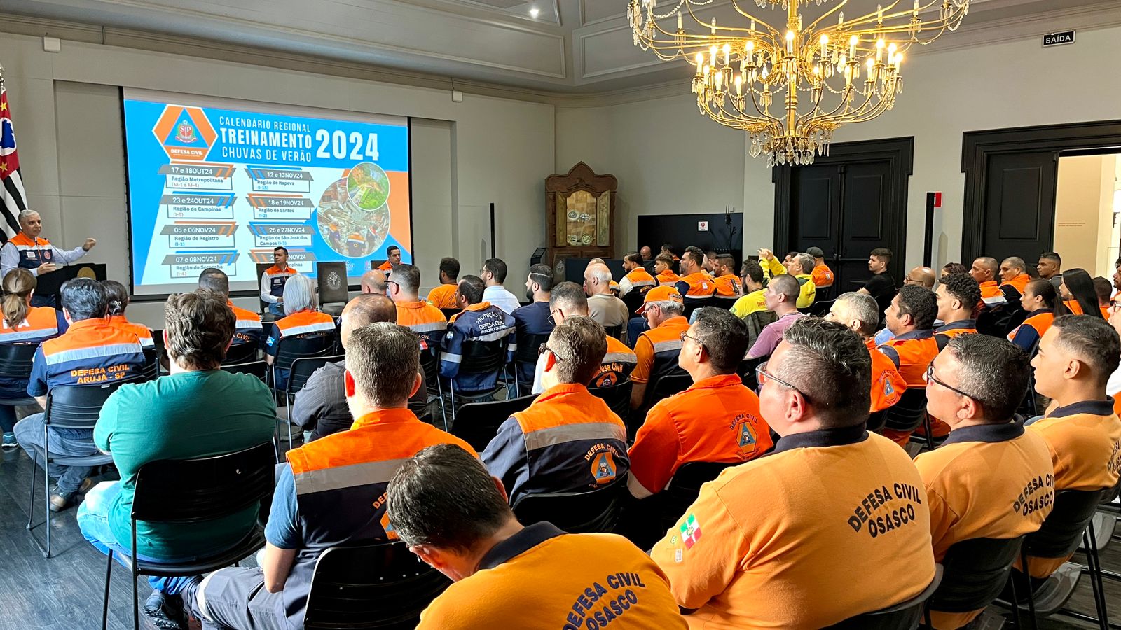 A Defesa Civil de Itaquaquecetuba está participando, entre esta quinta (17) e sexta-feira (18), de um ciclo de treinamentos promovido pela Defesa Civil de São Paulo focado nas chuvas de verão de 2024/2025. O evento está sendo sediado no Palácio dos Bandeirantes e reúne 74 agentes de 24 municípios, com a participação das secretarias municipais de Desenvolvimento Social, Meio Ambiente, Habitação e Cultura.