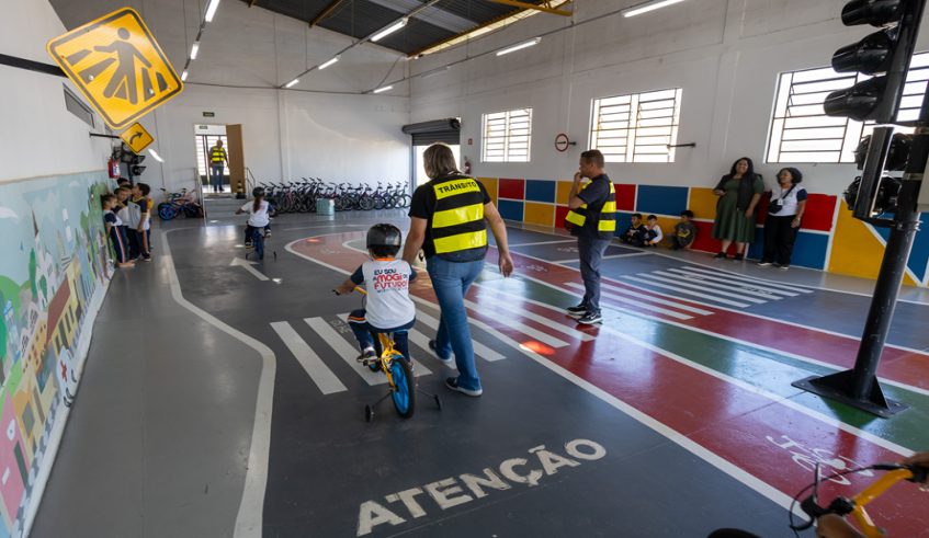 Durante o ano de 2025, 4.856 crianças de unidades públicas e particulares de Mogi foram atendidas pela Escola Mirim de Trânsito, que tem duas versões do projeto para crianças: em sua sede, em Cezar de Souza, e itinerante, em que a equipe vai até a escola com todos os equipamentos para transformar o espaço em uma sala de aula com uma simulação de trânsito de verdade, com faixa de travessia no chão, semáforo, placas, bicicletas que fazem o papel dos veículos, entre outros detalhes.