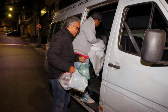 A operação distribui 100 kits de agasalhos contendo, blusa de frio, calça e meia.