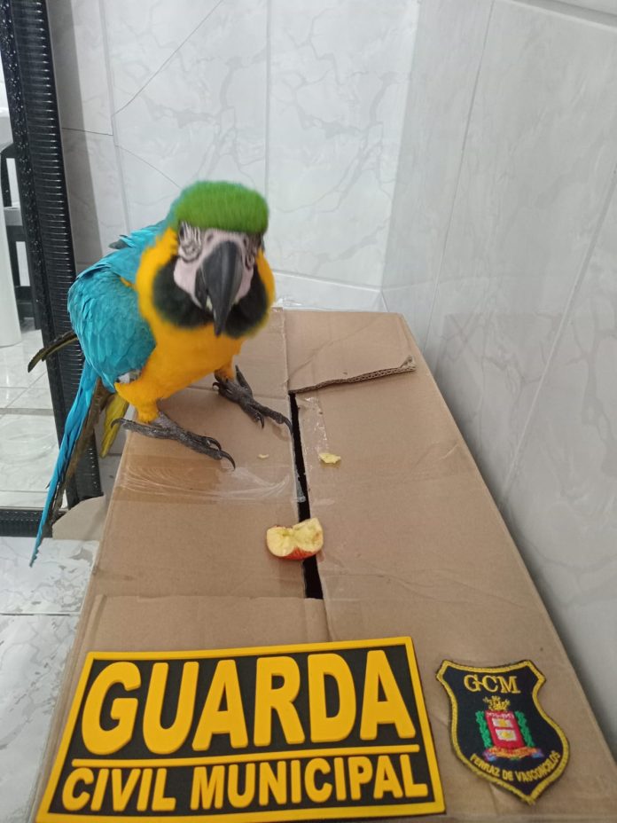 A Guarda Civil Municipal (GCM) de Ferraz de Vasconcelos realizou o resgate de uma ave silvestre da espécie arara-canindé, encontrada em via pública nas proximidades do Cemitério Parque do Cambiri.
