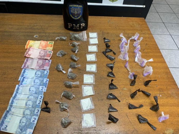 Na verificação do material abandonado, os agentes localizaram 13 porções de maconha, 40 porções de cocaína e R$ 50 em dinheiro. O conteúdo foi apresentado na Delegacia de Polícia Central.