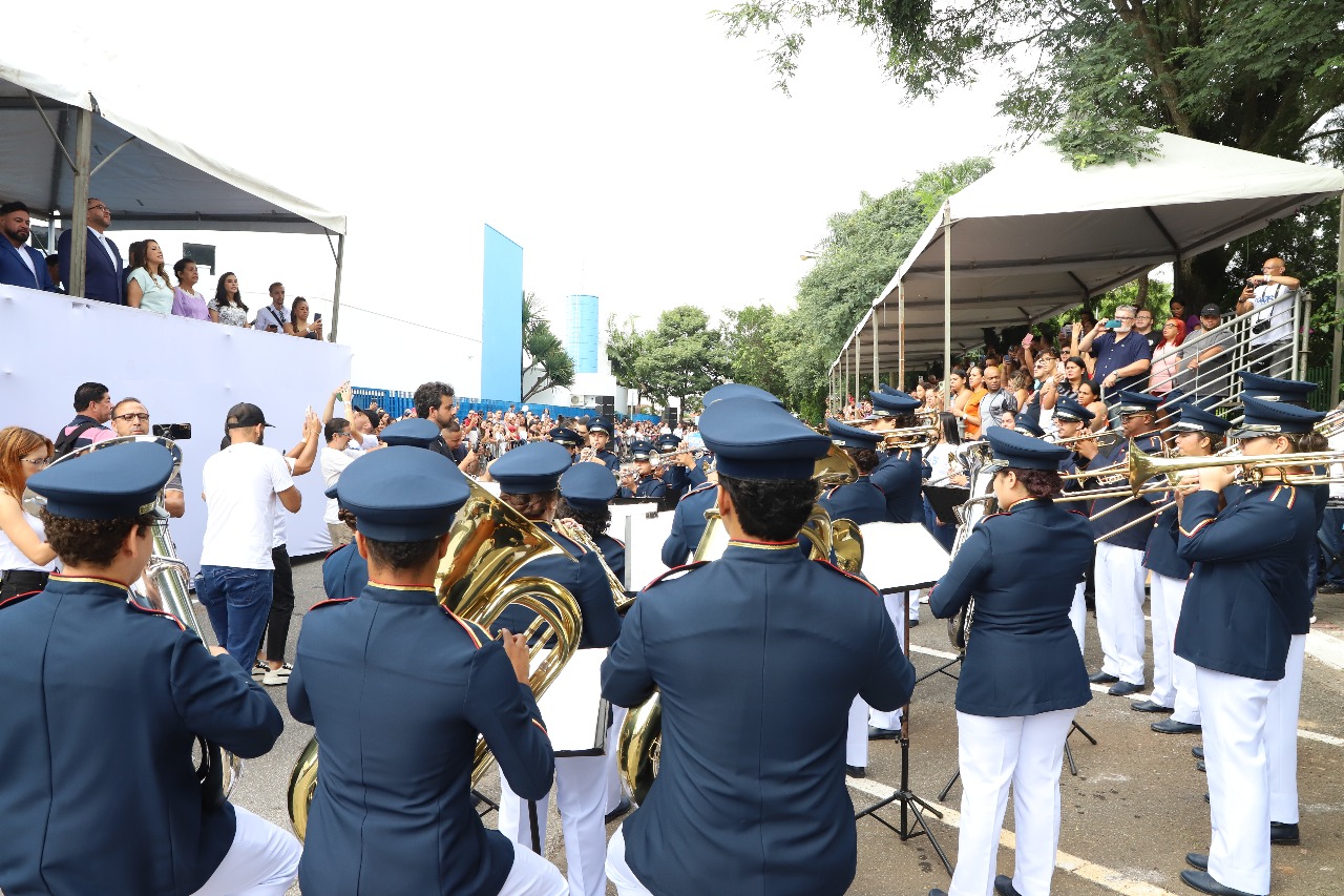 Após abertura com apresentação da Banda Marcial de Poá, que entoou os Hinos Nacional e de Poá, o prefeito Saulo Souza, acompanhado da primeira-dama Flavia Souza, deu início ao desfile. “Que alegria a gente ter de volta esse orgulho de ser poaense. Neste dia do aniversário de 76 anos da nossa cidade, meu coração está duplamente feliz, pelo fato de ser o primeiro prefeito da história de Poá nascido e criado em Poá, e por lembrar que um dia eu era uma dessas crianças no desfile, aprendendo cidadania e a amar a nossa cidade”, lembrou o prefeito.