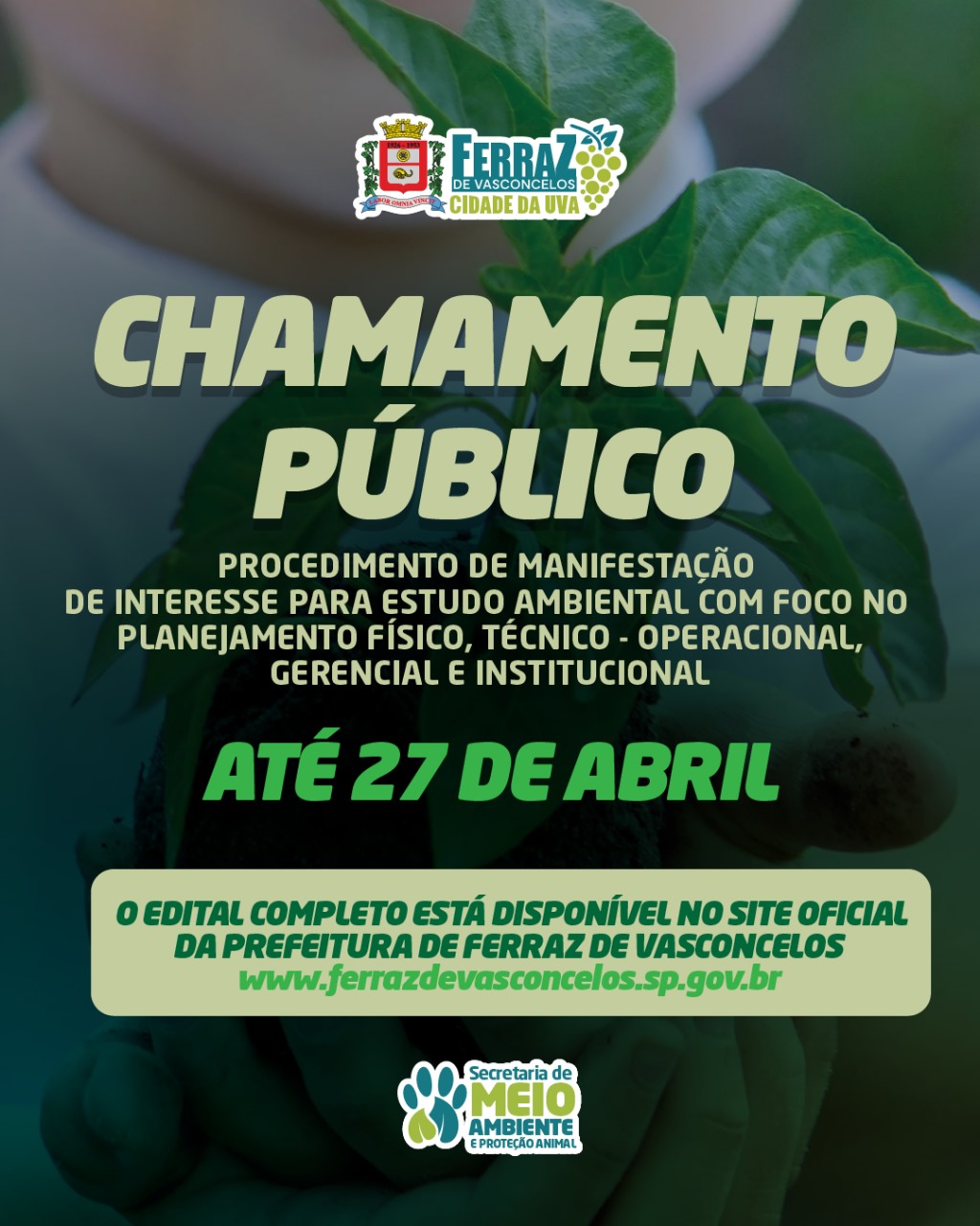 A Prefeitura de Ferraz de Vasconcelos, por meio da Secretaria de Meio Ambiente e Proteção Animal, lança chamamento público para receber estudos ambientais voltados ao planejamento físico, técnico-operacional, gerencial e institucional para a gestão e destinação dos resíduos sólidos urbanos. O prazo de participação se encerra em 27 de abril de 2025.