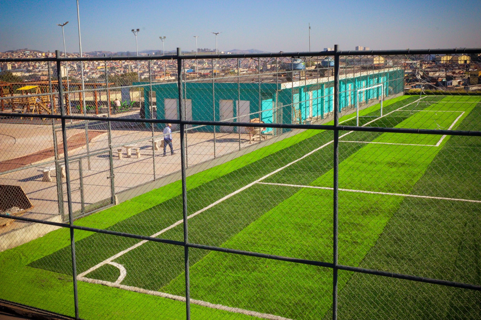 “Muita coisa tem avançado por aqui e o Centro de Convenções já não é mais uma estrutura abandonada e desgastada pelo tempo”, afirmou o secretário. As obras na Vila Olímpica foram o outro ponto visitado. Os serviços foram divididos em duas etapas. Uma nova portaria para acesso às dependências, além de um gradil que está sendo instalado em toda a extensão dará mais segurança aos frequentadores. Alguns locais já estão concluídos, faltando somente arremates como o piso emborrachado da Academia ao Ar Livre. O campo já está com gramado novo e os trabalhadores estão concluindo a instalação de corrimões em outros ambientes como o acesso para uma área social próximo à pista de corrida na parte de cima.