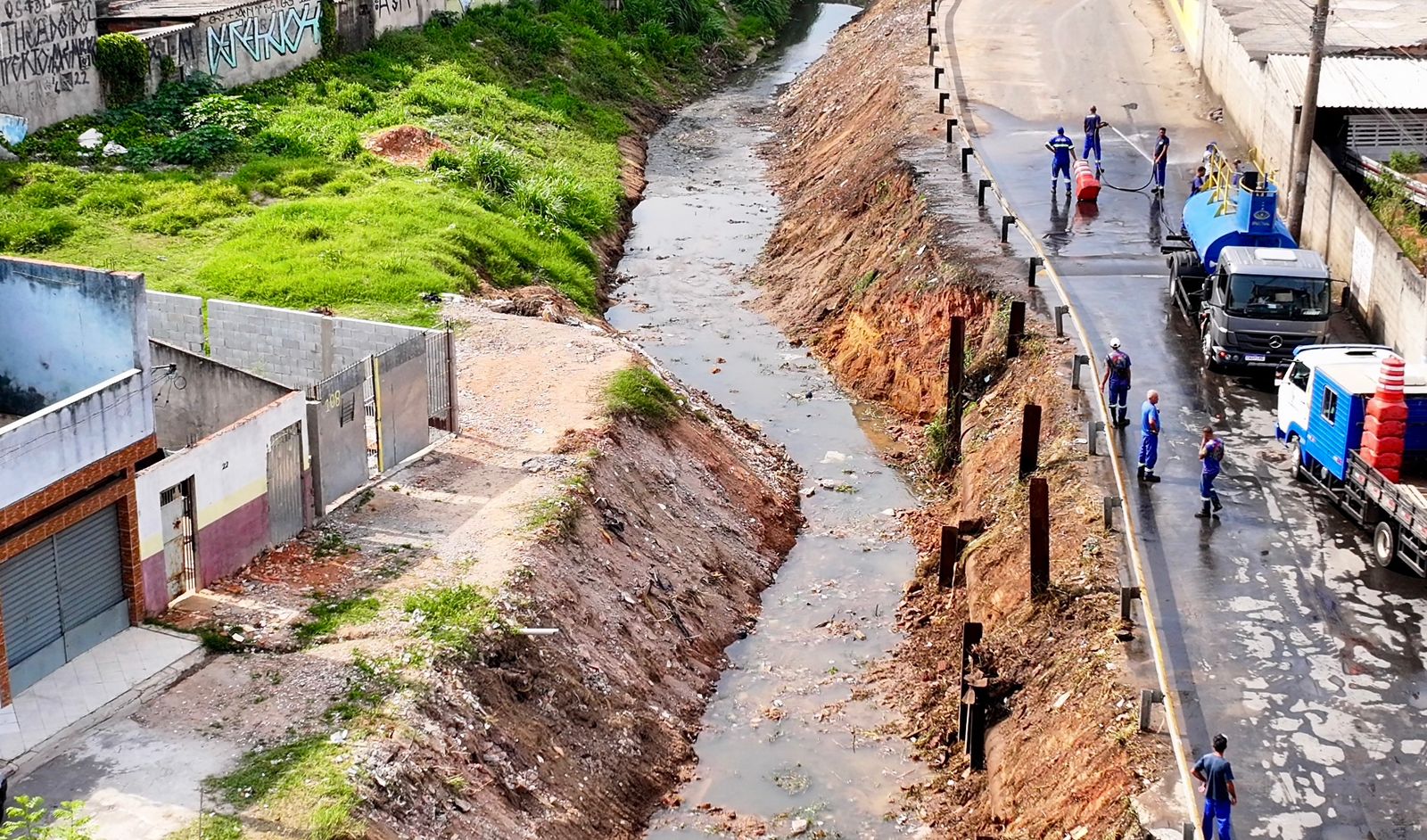 “Estamos entrando com as máquinas para fazer o trabalho pesado e, quando é necessário, temos homens em campo auxiliando no corte de mato nas margens e até mesmo na limpeza manual”, explicou o secretário de Serviços Urbanos, Alexandre Oliveira.