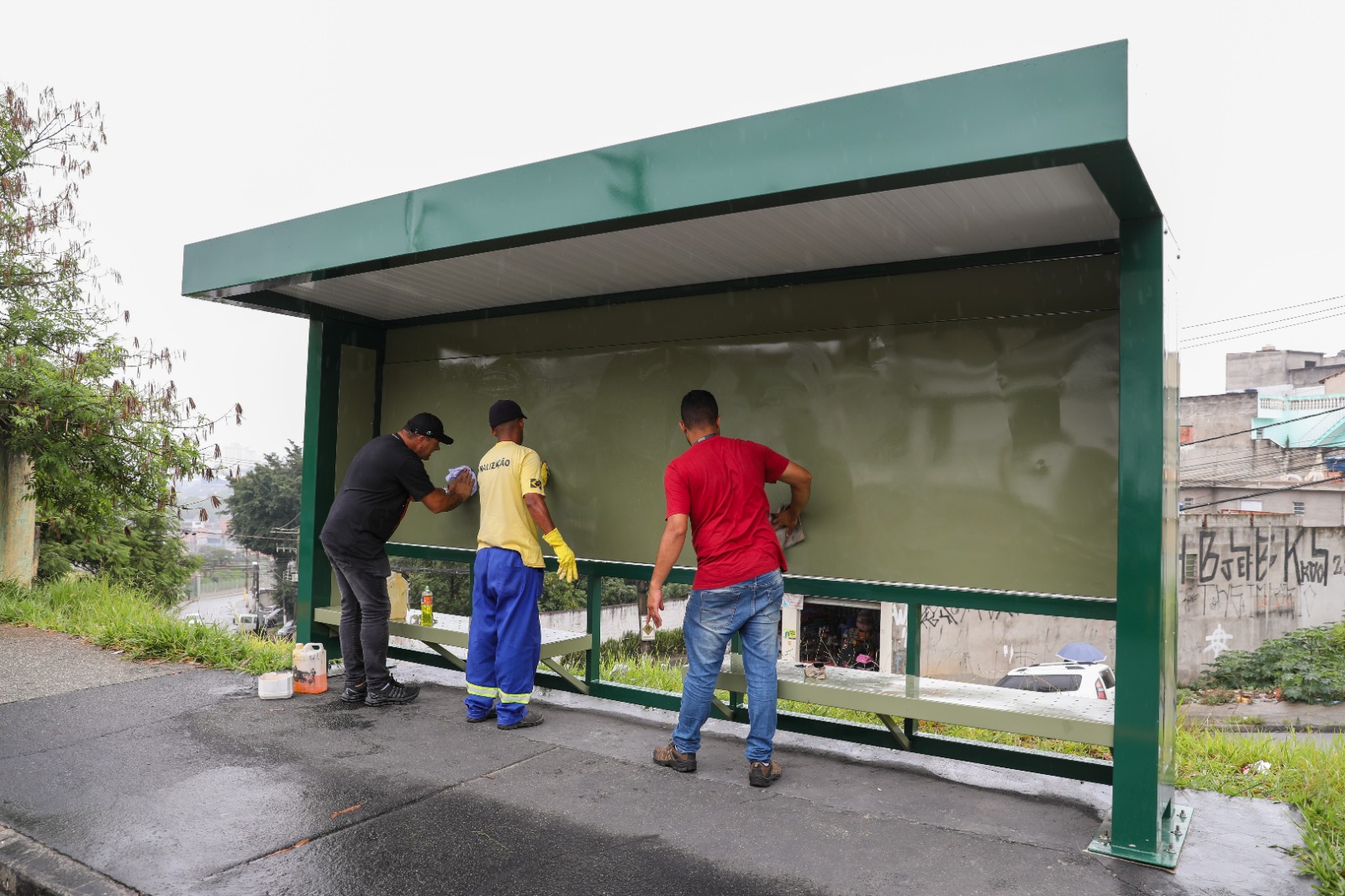 “Novos pontos [de ônibus], velhos hábitos… lamentável”, essa foi a frase da senhora Maria José, moradora da Vila Pereira, quando viu a Equipe de Sinalização da Secretaria de Transporte e Mobilidade Urbana realizando a limpeza do local que havia sido entregue há um mês, na Estrada dos Bandeirantes, no Jardim Angelina. A mesma complementou: “A alegria é que a limpeza chegou rápido demais. Eu agora vou ficar de olho, se alguém vier depredar, eu ligo pra GCM na hora”, desabafou.