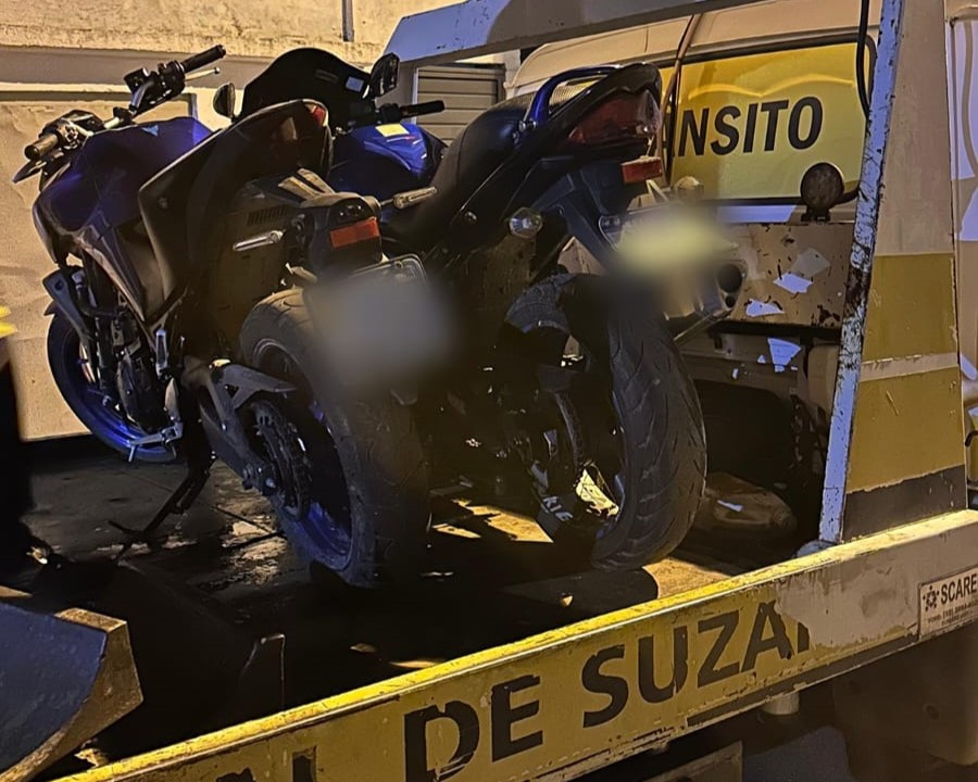 Foram dados sinais de parada, que o condutor ignorou, o que resultou em um breve acompanhamento pela via. Em seguida, o suspeito abandonou a moto e fugiu a pé, entrando em uma casa abandonada, não sendo possível localizá-lo. Ainda na residência, foi localizado outra moto, uma Honda Fan, preta, também com queixa de roubo. Foi solicitado o guincho para recolher os veículos.